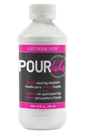 When POUR44 is mixed with acrylic paint, it will impart a self-leveling satin finish. Versatile medium for all kinds of popular pouring techniques and compatible with most acrylic paints. Other uses include to thin and transparentize acrylic color and mediums.
