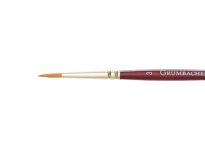 Round Size 3 SKU – 4620.3 Size – 3 Round: Shorter hair than a liner, rounds come in a wider variety of sizes from very fine to extra large. Smaller sizes are typically used for detail work and larger sizes tend to be used for washes and filling in color. A round brush stroke is tapered and can create lines that are fine to thick. The round has less versatility than the flatter brushes.