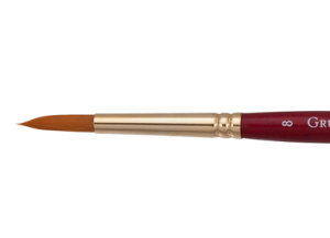 Round Size 8 SKU – 4620.8 Size – 8 Round: Shorter hair than a liner, rounds come in a wider variety of sizes from very fine to extra large. Smaller sizes are typically used for detail work and larger sizes tend to be used for washes and filling in color. A round brush stroke is tapered and can create lines that are fine to thick. The round has less versatility than the flatter brushes.