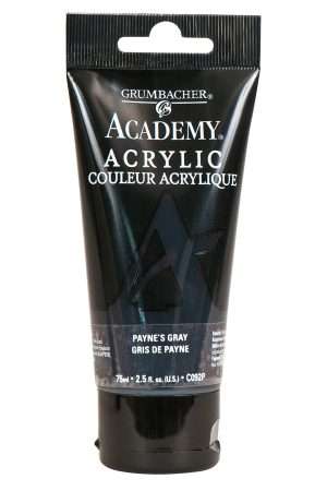 The Grumbacer Academy Acrylics line is a powerful and effective array of 48 pigment-packed soft body acrylics. Offering everything from process colors, metallic and iridescent colors, as well as the most sought after traditional colors, this line was developed and formulated to provide professional performance at a single student price. All 48 colors have an ASTM lightfast rating of 1- Excellent and are labeled AP. Academy Acrylics are highly pigmented and have superior tinting strength when compared to other student grade acrylics. Available in 90 &150 ml metal tubes as well as 75 & 200 ml plastic tubes. Proudly made in the USA.