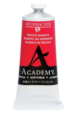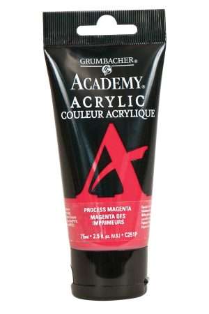 The Grumbacer Academy Acrylics line is a powerful and effective array of 48 pigment-packed soft body acrylics. Offering everything from process colors, metallic and iridescent colors, as well as the most sought after traditional colors, this line was developed and formulated to provide professional performance at a single student price. All 48 colors have an ASTM lightfast rating of 1- Excellent and are labeled AP. Academy Acrylics are highly pigmented and have superior tinting strength when compared to other student grade acrylics. Available in 90 &150 ml metal tubes as well as 75 & 200 ml plastic tubes. Proudly made in the USA.