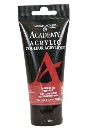 The Grumbacer Academy Acrylics line is a powerful and effective array of 48 pigment-packed soft body acrylics. Offering everything from process colors, metallic and iridescent colors, as well as the most sought after traditional colors, this line was developed and formulated to provide professional performance at a single student price. All 48 colors have an ASTM lightfast rating of 1- Excellent and are labeled AP. Academy Acrylics are highly pigmented and have superior tinting strength when compared to other student grade acrylics. Available in 90 &150 ml metal tubes as well as 75 & 200 ml plastic tubes. Proudly made in the USA.