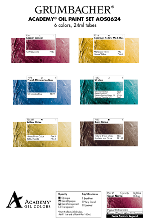 Grumbacher® Academy® Oil 6 Color Basic Set, 24 ml.