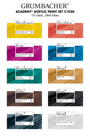 Grumbacher® Academy® Acrylic 10 Color Set, 24 ml.