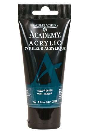 The Grumbacer Academy Acrylics line is a powerful and effective array of 48 pigment-packed soft body acrylics. Offering everything from process colors, metallic and iridescent colors, as well as the most sought after traditional colors, this line was developed and formulated to provide professional performance at a single student price. All 48 colors have an ASTM lightfast rating of 1- Excellent and are labeled AP. Academy Acrylics are highly pigmented and have superior tinting strength when compared to other student grade acrylics. Available in 90 &150 ml metal tubes as well as 75 & 200 ml plastic tubes. Proudly made in the USA.