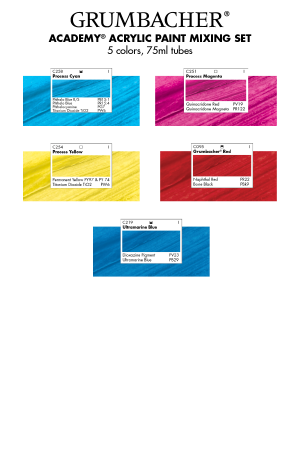 Grumbacher® Academy® Acrylic 5 Color Mixing Set, 75ml.