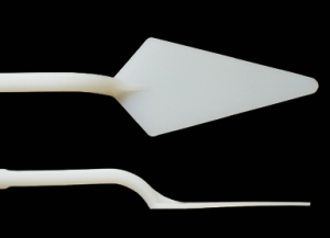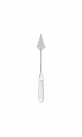 Small Painting Knife SKU – PKS6C Size – Springy handle with large crank provides exceptional control while keeping the hand off of the paint surface. Smaller, symmetrical shape is excellent for creating rich texture, short quick strokes, and precise details. Hard angles and stiffness are perfect for sgraffito as well as press and lift techniques. Low flexibility.