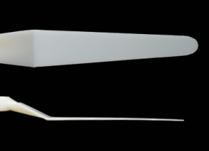 Spatula Painting Knife SKU – PKS6D Size – Ideal for transporting medium, mixing color and scraping. Elongated shape creates long strokes with ease. Angled handle keeps the hand off of the paint surface. Round edges are non-cutting, eliminating unnecessary scratches in the palette or paint surface and allows paint to fall freely from the knife. High flexibility.